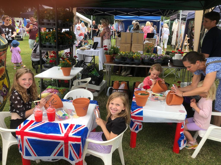 After a wet start that delayed visitors generally, the Rec soon filled up when the sun came out. Interest in our stand had a significant boost this year from our “Paint and Plant a Pot” event for children. Generously sponsored by Woodlark Nurseries of Hersham, over 30 children, from 2 to 15, decorated real terracotta pots with paint sticks and then filled them with bedding plants, all for a modest £3. The children had great fun and parents clearly appreciated the “hands on” activity with plants and compost, with a number of them signing up for membership. This looks like becoming an annual event, sponsors permitting